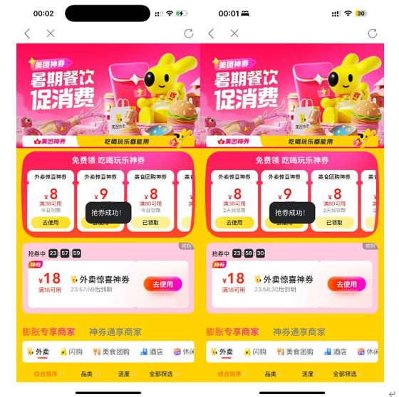 奈何只有1000张!据了解,美团在其他省份的发券活动同样也是如此,一键领到169元券包的人有很多,但中奖满18-18券真是要爆棚好运。