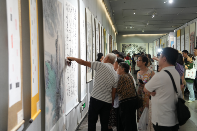 在湖南省人大常委会原副主任、省人民政府原副省长唐之享宣布书画展开幕后,与会嘉宾在解说员的引导下逐一参观了书画作品。一致认为,本次书画展突出政治性、思想性、艺术性,每一幅作品都饱含着艺术家们对历史的叩问、对英雄的敬仰、对祖国的热爱、对和平的渴望,启迪着人们热爱祖国、珍爱和平,激励着人们为民族进步、国家富强、人民幸福、人类和平挺膺担当,奋发有为。