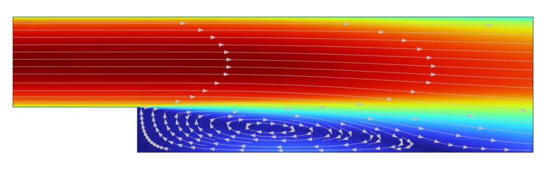 流体流动时,空间上速度分布不均匀(图中不同颜色代表速度大小,红色越大,蓝色越小),每个点都和相邻位置间存在相对运动 图源:作者绘制