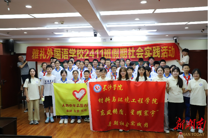 为弘扬“两弹一星”精神,传承精神火种,2025年7月5日上午九点,由长沙学院材料与环境工程学院9名学子组建的“东风铸盾,星耀寰宇”暑假社会实践团走进长沙市芙蓉区定王台街道潘后街社区,为来自雅礼外国语中学的40余名同学开展了一场以“两弹一星”为主题,以东风导弹为核心的宣讲活动。