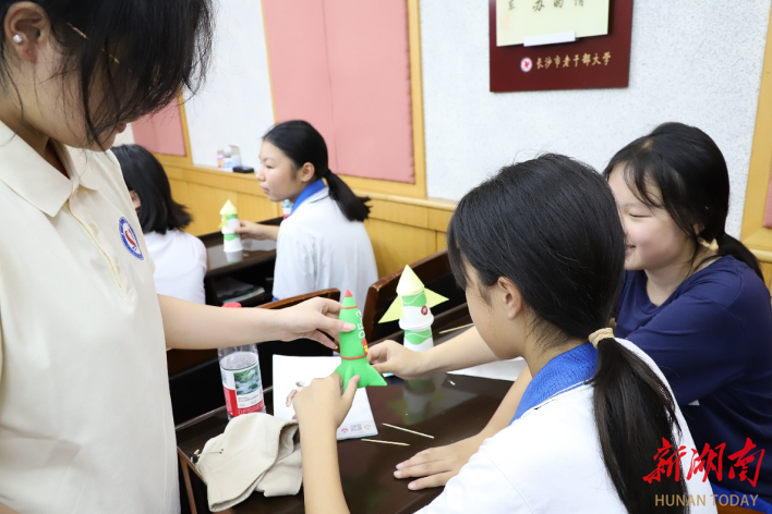 为加深学生对导弹技术的理解,实践团采用酒精喷射的方式模拟火箭发射实验,直观展示推进原理;通过分发手工材料,指导学生亲手制作皮筋小火箭,在动手实践中探索力学奥秘;更是结合专业特长,展示由3D打印、陶瓷以及黏土三种材料制作出的导弹模型,并从材料科学角度剖析金属、陶瓷等不同材质对导弹性能的影响,让抽象的科学知识变得触手可及。