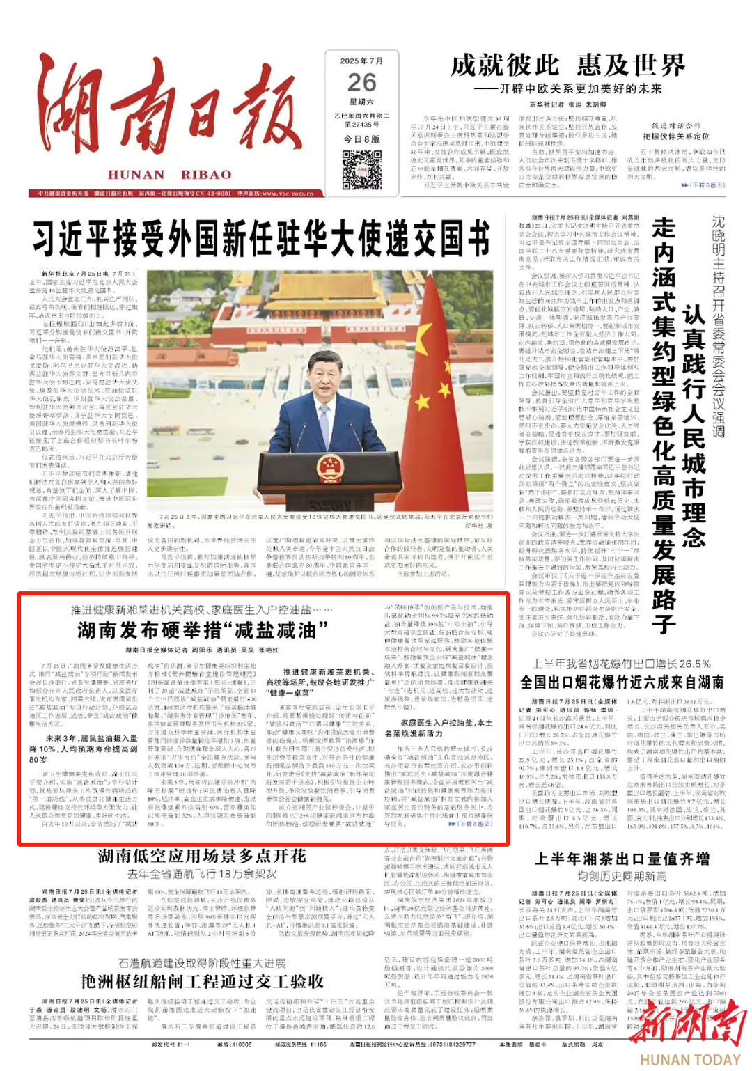 成立省湘菜产业链标委会,计划年内制修订2—6项健康新湘菜地方标准和团体标准。鼓励研发兼具“减盐减油”与“风味传承”的创新产品与技术。如推出氯化钠比例从99.7%降至75%的低钠盐、钠含量降低30%的“小炒生抽”。引导大型商超设立低盐、低脂肪食品专柜,延伸健康餐饮至家庭厨房。鼓励各地市依托本地特色食材与文化,研发推广健康一桌菜。鼓励餐饮企业将减盐减油理念融入婚宴、团餐及家庭聚餐套餐设计,提供科学搭配建议,让健康新湘菜理念覆盖更广泛的消费场景。推进健康新湘菜“七进”(进机关、进高校、进大型活动、进旅游线路、进星级宾馆、进特色街区、进特色小镇)。