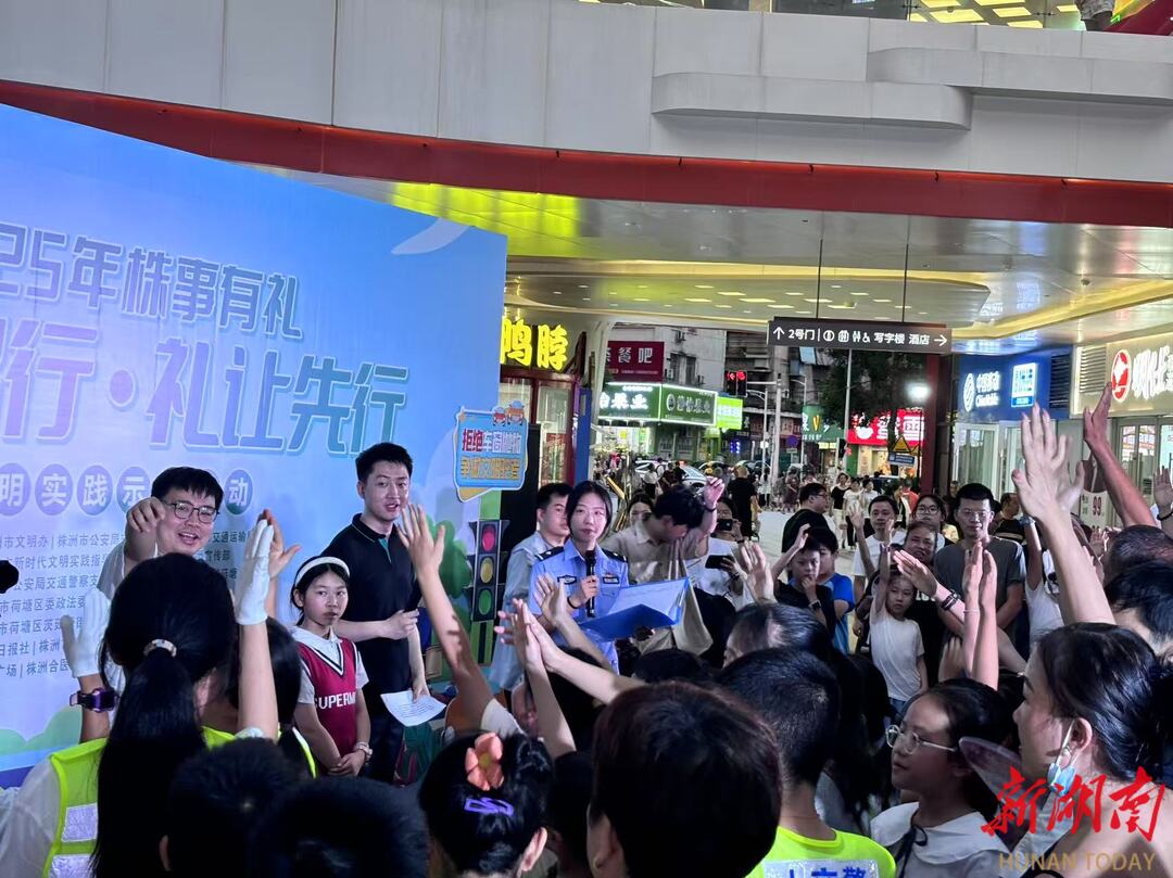 湖南日报·新湖南客户端7月25日讯(记者 龙子怡 通讯员 胡妮) 7月25日晚,株洲市2025年度“株事有礼·文明出行·礼让先行”文明实践示范活动在荷塘区世贸广场举行。本次活动由市文明办、市公安局交通警察支队、市交通运输局联合主办,旨在通过寓教于乐的形式,倡导市民践行“礼让斑马线、不闯红灯、规范停车、拒绝酒驾、佩戴头盔”的文明出行理念。