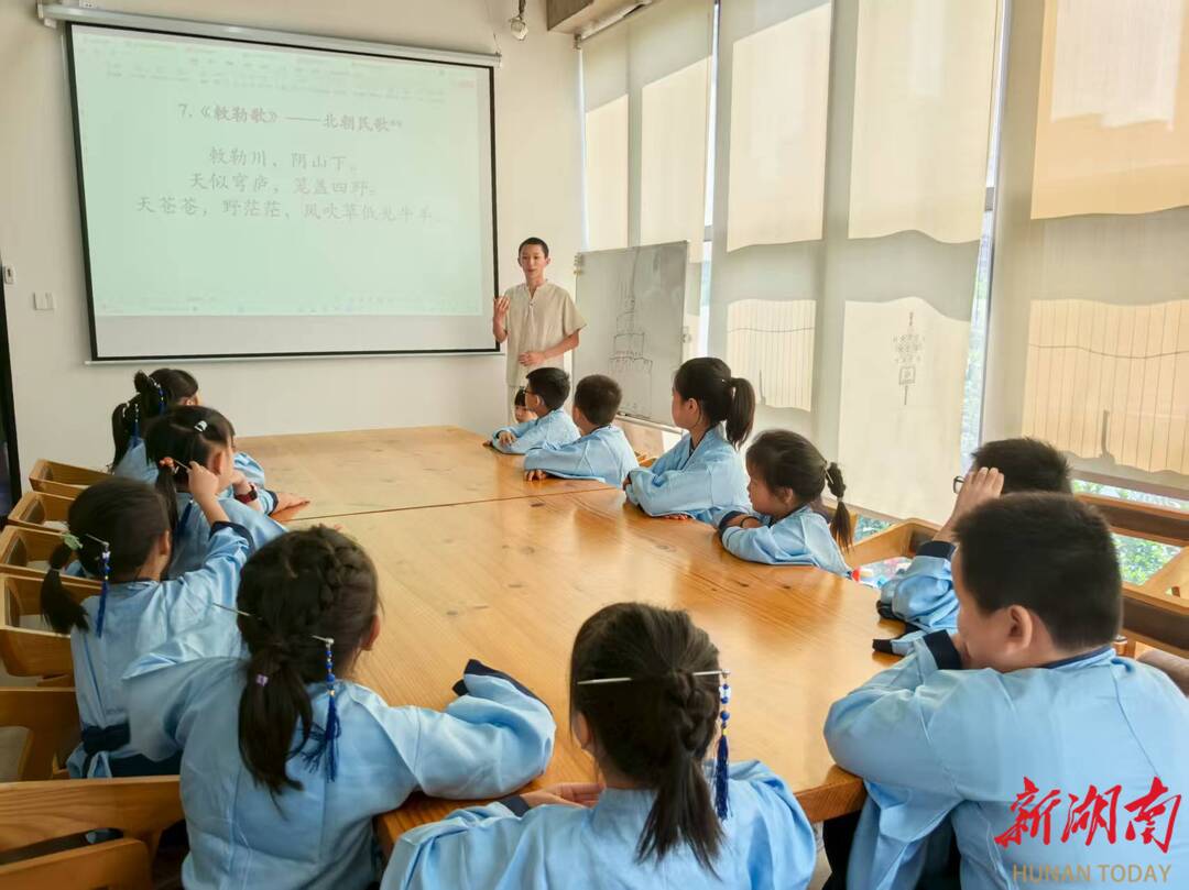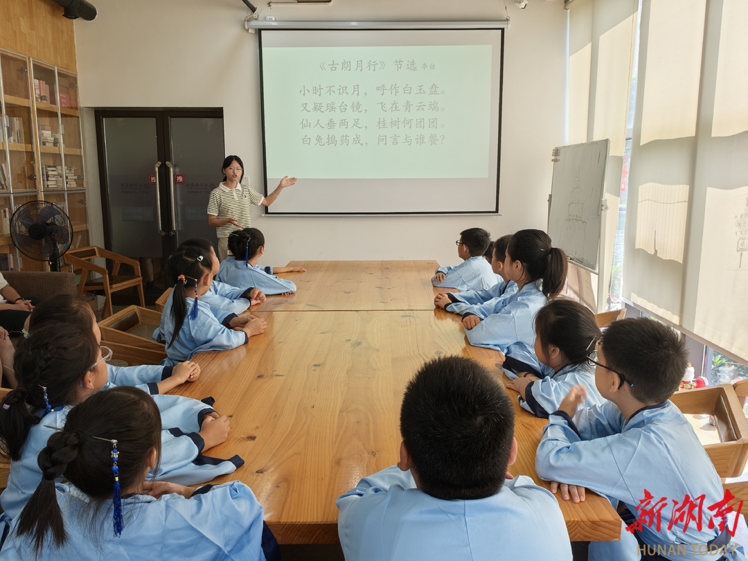 湖南日报·新湖南客户端7月26日讯(记者 肖霄)“天苍苍,野茫茫,风吹草低见牛羊。”今天,长沙市雨花区圭塘河羽燕湖畔的和+共享图书馆内,不时传出稚嫩、整齐的吟诵声。
