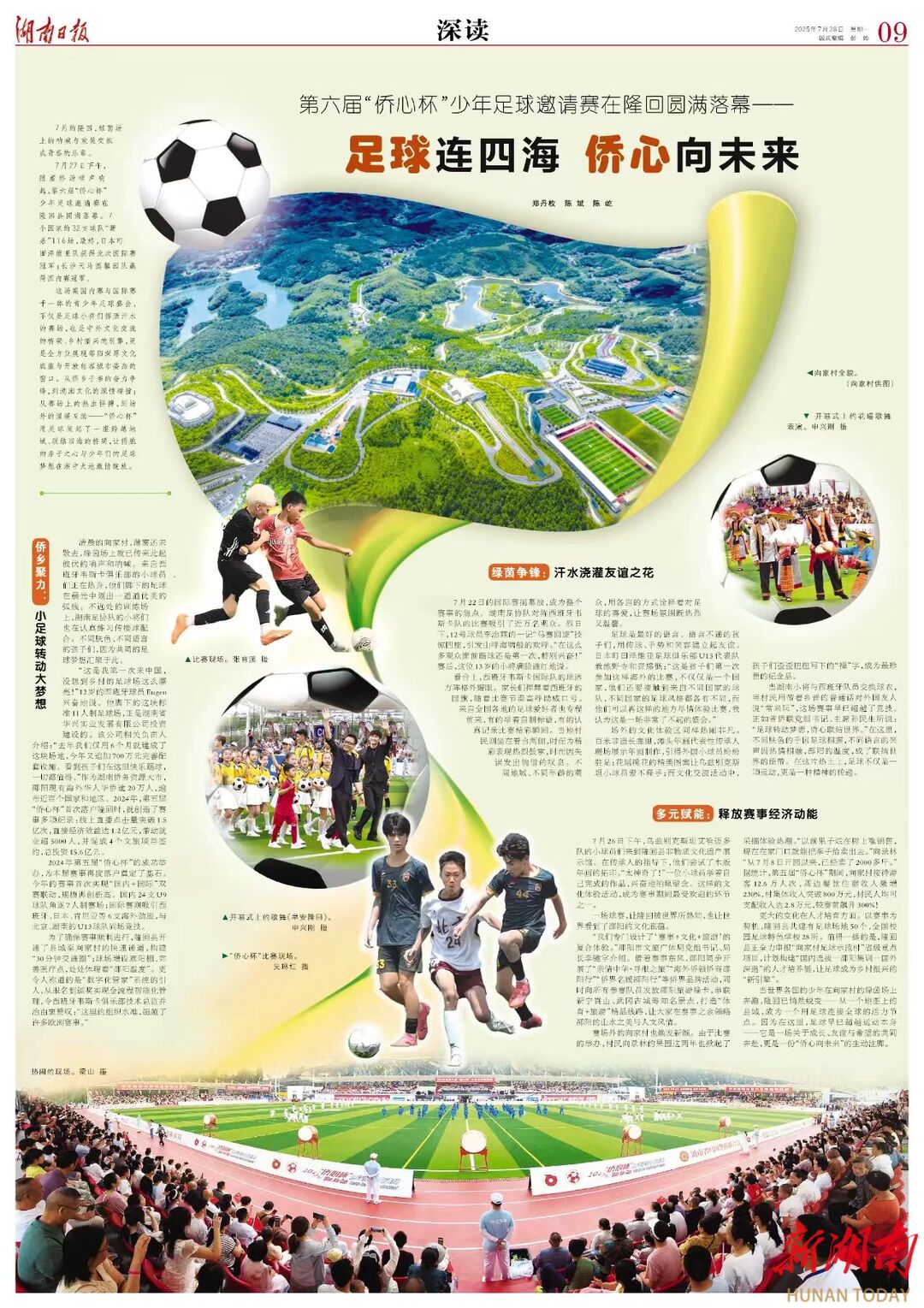 这场集国内赛与国际赛于一体的青少年足球盛会,不仅是足球小将们挥洒汗水的赛场,也是中外文化交流的桥梁、乡村振兴的引擎,更是全方位展现邵阳深厚文化底蕴与开放包容城市姿态的窗口。从侨乡子弟的奋力争锋,到湖湘文化的深情碰撞;从赛场上的热血拼搏,到场外的温暖互助——“侨心杯”用足球架起了一座跨越地域、联结四海的桥梁,让侨胞的赤子之心与少年们的足球梦想在湘中大地激情绽放。