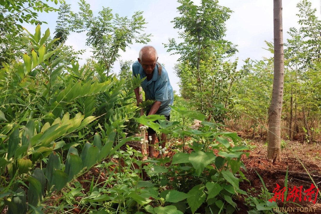 盛夏时节,位于新田县陶岭镇邝胡社区的天裕家庭农场中草药种植基地绿意盎然,工人们正躬身于玉竹田间,手持锄头细致除草。这片220余亩的立体种植示范基地,正以“乔木护荫、灌木固土、草本增收”的生态智慧,让昔日低效林地焕发新生,实现效益叠加。