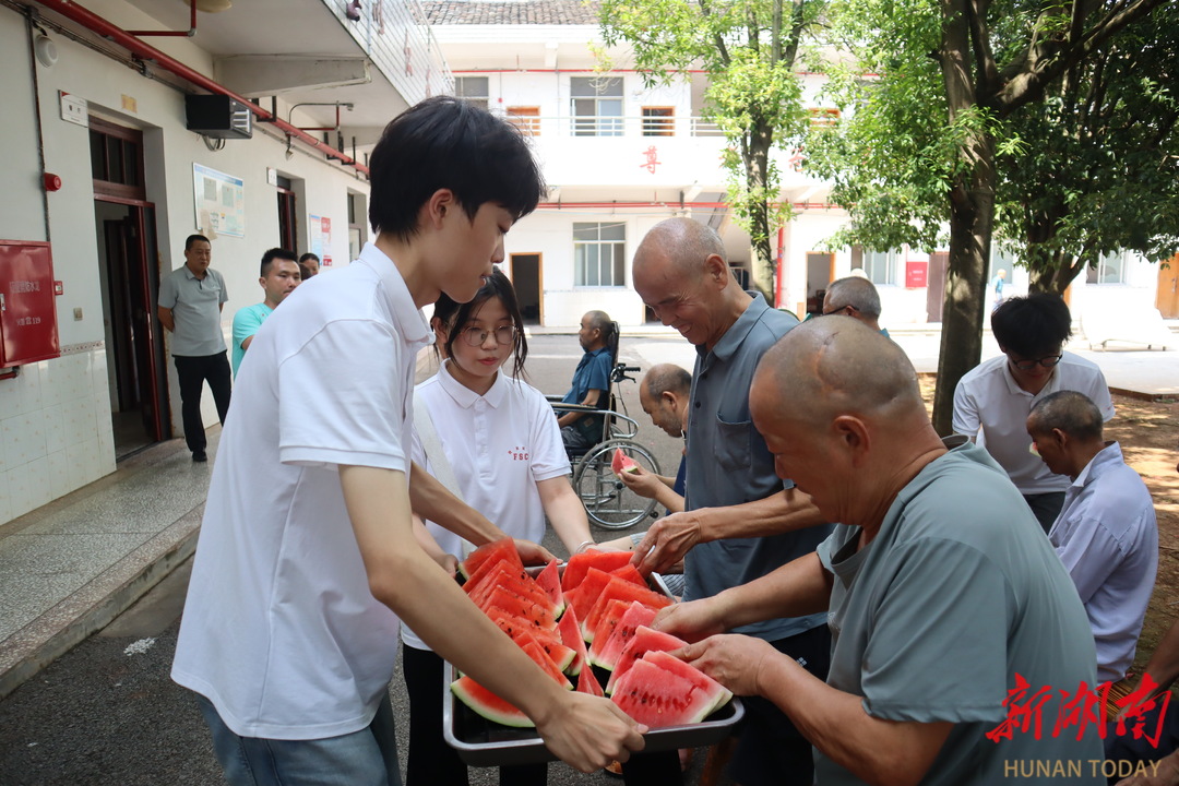 递到老人手中的西瓜,解的是暑热,润泽的却是心田;弯腰清扫的每一个细节,维护的是环境,彰显的是晚辈的敬意。实践团用最朴实的行动,将健康知识宣讲延伸为看得见、摸得着的关怀。他们忙碌的身影和真诚的笑容,如同夏日里的一股暖流,无声地诉说着对长者的尊重与关爱,让陪伴的温度在现场久久萦绕,展现了新时代青年的敬老情怀与责任担当。