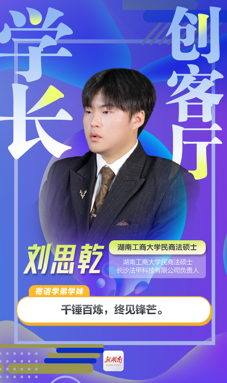 在积极拥抱人工智能与法律服务深度融合的新时代背景下,湖南工商大学刘思乾以法律专业为基,AI技术为翼,勇闯AI+法律创新赛道,为普罗大众提供了便捷、高效的法律服务,书写了科技赋能法律服务的新篇章,闯出了一条智慧普法的创业新路。