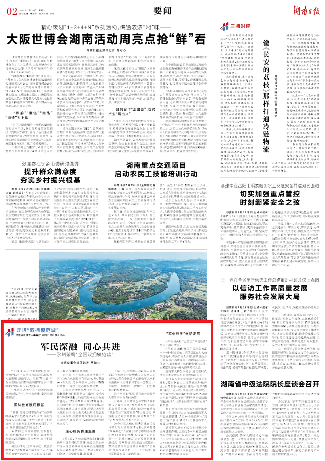 社会对军人用心用情的尊崇关爱与军人对人民的深情守护,从来都是“双向奔赴”。“戎耀永州”志愿服务品牌汇聚3.2万名志愿者,投身各个志愿场景——“老兵护旗队”走进校园开展升旗仪式,老军医巡诊队走进社区送诊,双牌县暴雨灾害现场迷彩服与“红马甲”并肩抢通道路……一个个场景,成为军民连心最生动的注脚。