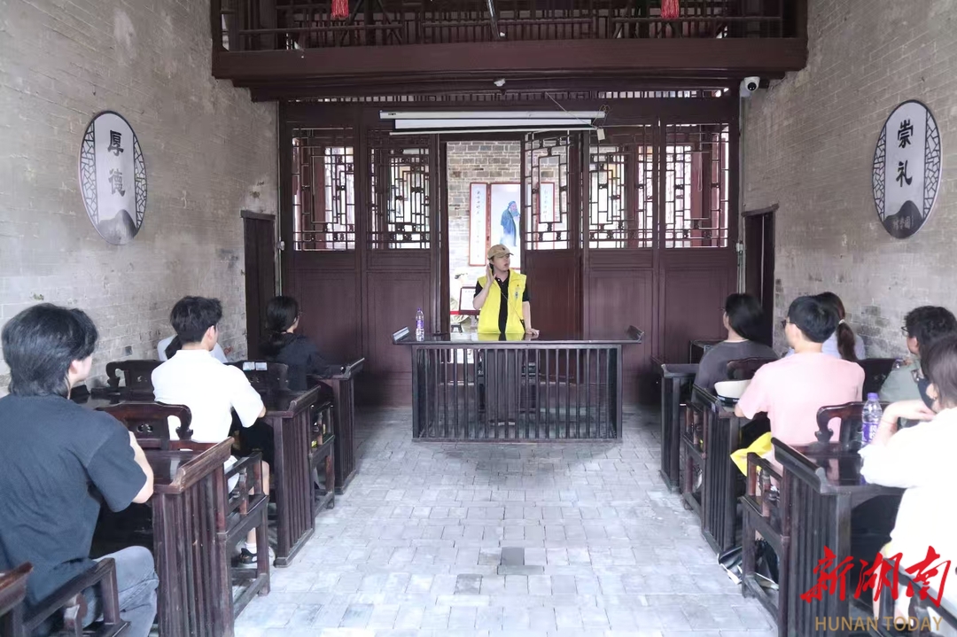 从平江来到汨罗长乐镇,郑家大屋在树荫下透着岁月的沉静。这座清代古厝曾是中共湘北特委办公地,当年地下党在此传递情报、召开会议的痕迹,仍留在斑驳的墙缝与隐蔽的夹墙中。如今,曾经传递革命火种的院落,成了向外界讲述湘北革命故事的窗口。队员们试着调试镜头角度,让百年老屋的飞檐与新时代的直播屏同框——老墙沉默矗立,光影流转间,仿佛正通过镜头与青年们的新想法完成一场跨越时空的对话。
