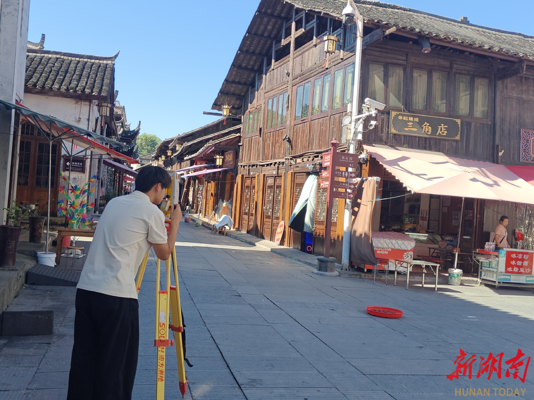 长沙学院“追光者”数智红旅暑期社会实践团在益阳市谢林港镇清溪村通过无人机倾斜技术进行数据采集,全景拍摄周扬故居、立波清廉书屋与红色文学成就展馆等地,以720度全景图像实现云端旅游导览,设计交互体验数字文创,让静态资源“动”起来,丰富旅游体验,以数智动能助推乡村旅游振兴。