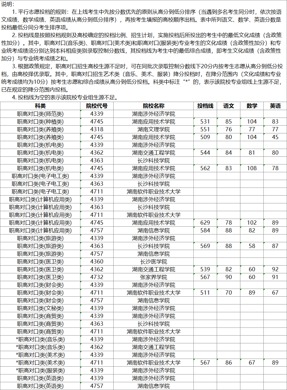 湖南省2025年普通高校招生本科批(职高对口类)第二次征集志愿投档分数线