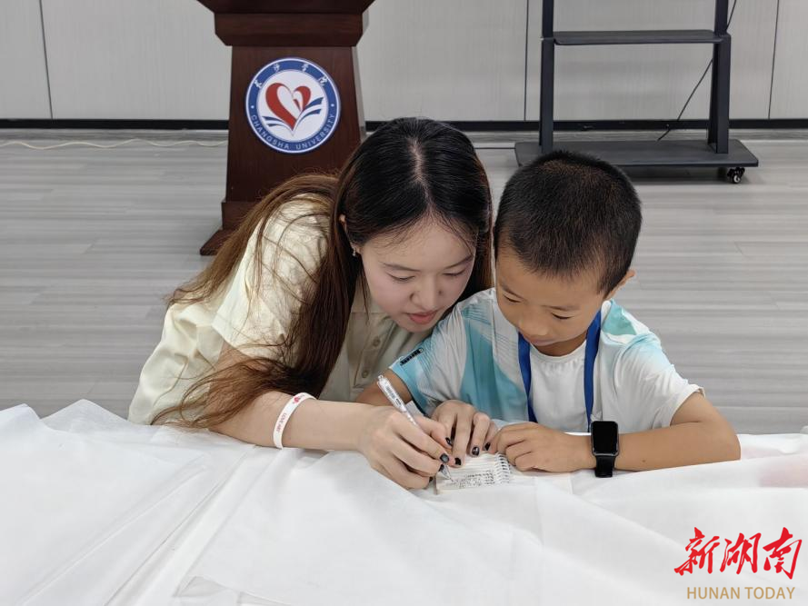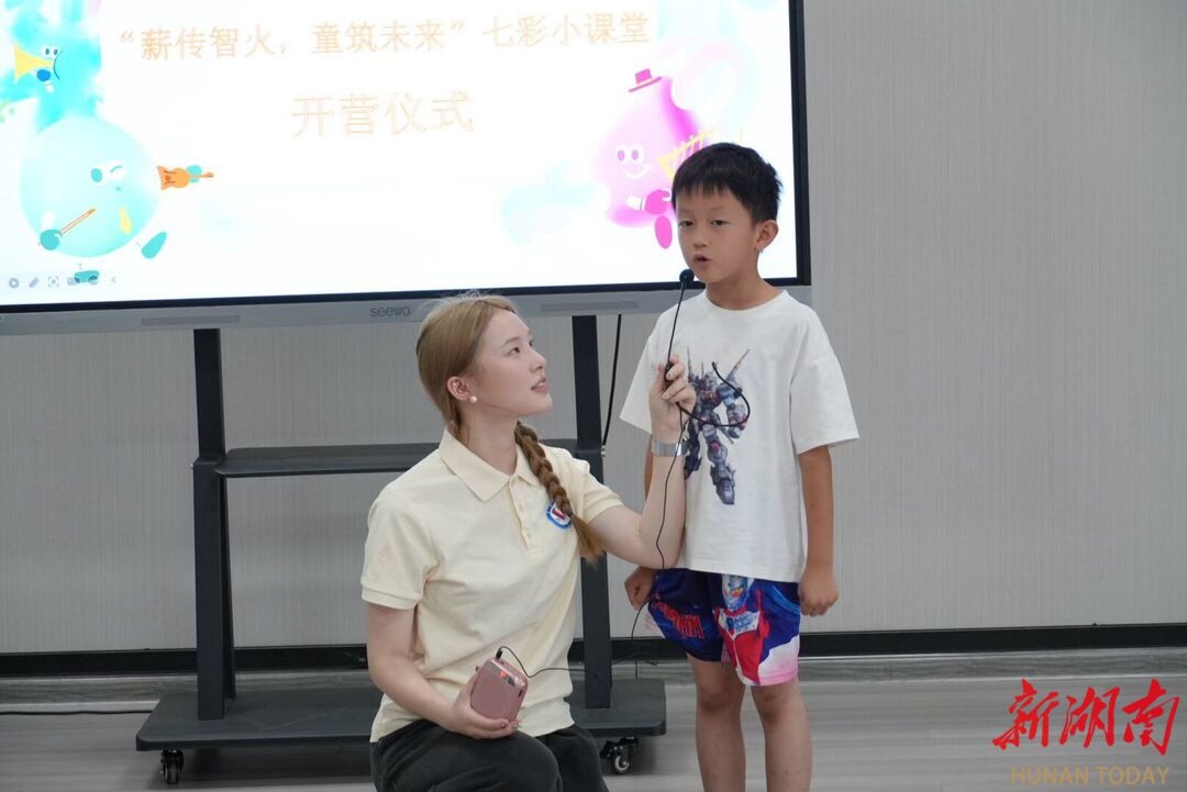 “岛屿化作小星星,黑夜里放光明...”小精灵的歌声缓缓响起,小朋友们我们上课啦!7月1日至10日,长沙学院“薪传智火,童筑未来”暑期社会实践团在该校招就处招聘大厅开展了为期十天的七彩小课堂活动。该活动由长沙学院团委、关工委、工会联合指导,校学生会、青年志愿者总会及造血干细胞宣传服务团队共同组织实施,50名大学生志愿者与三十余个教职工家庭的子女结对,通过“1对1、1对2青春互育”模式,在课程互动中实现儿童成长与大学生实践能力提升的双向赋能,不仅破解了教职工暑期带娃难题,更谱写出一部跨代际的成长诗篇。