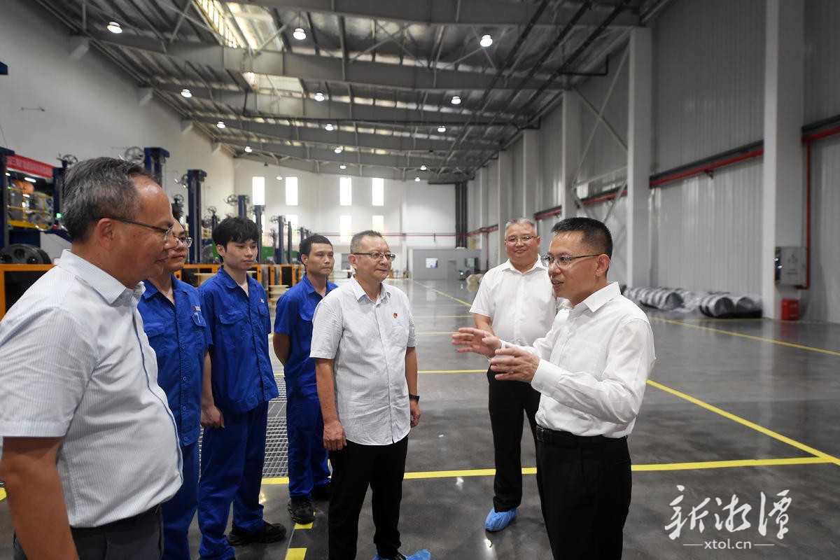 李永亮在金杯电工新能源电磁线扩能倍增项目现场,调研建设情况,慰问一线劳动者。(罗韬 摄)