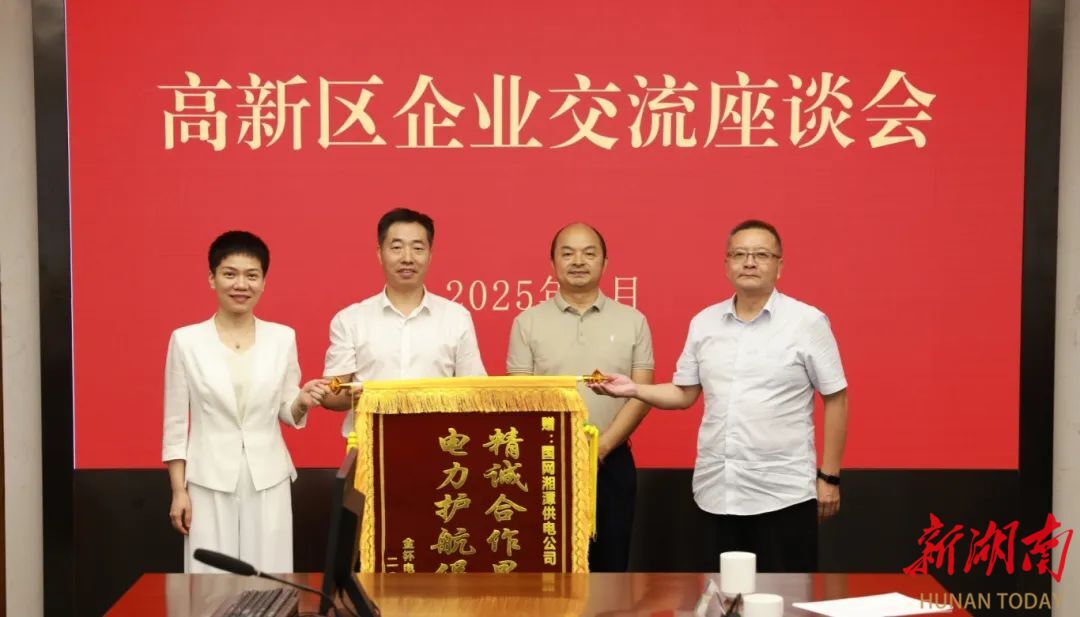 湖南日报·新湖南客户端7月31日讯(通讯员 张如意 唐艺丹)7月30日,国网湘潭供电公司召开湘潭高新区企业交流座谈会。会上,企业代表向国网湘潭供电公司赠送锦旗,对其在园区电力建设、主动服务等方面作出的贡献表示感谢。