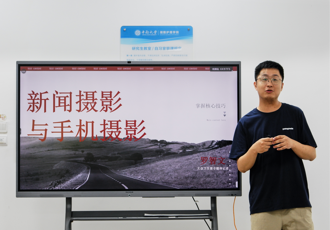 值得一提的是,大众卫生报资深全媒体记者罗智文带来《新闻摄影与手机摄影》实用课程分享。罗老师从构图技巧、光线运用、新闻纪实拍摄等方面进行专业指导,并现场演示手机摄影的便捷操作,提升了学生党员的宣传工作能力,为党建活动记录与宣传注入新活力。