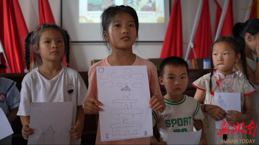 最喜欢拍孩子们上课。憋气比赛小脸憋得通红,学安全知识小手举得像小树林。画房子最有趣。黑笔在白纸上蹦蹦跳跳,鼓楼飞檐、吊脚木楼一点点显出来,小小的脑袋里装着大大的惊奇。他们昂着小胸脯站上讲台,对着我的镜头,脆生生地讲自己画的“家”,小脸上亮晶晶的,全是藏不住的骄傲。按下快门那一刻,看着那些稚拙却神气的线条,我忽然懂了,勇气原来也有形状——它就长在这些孩子们挺直的腰板和闪闪发光的眼睛里。