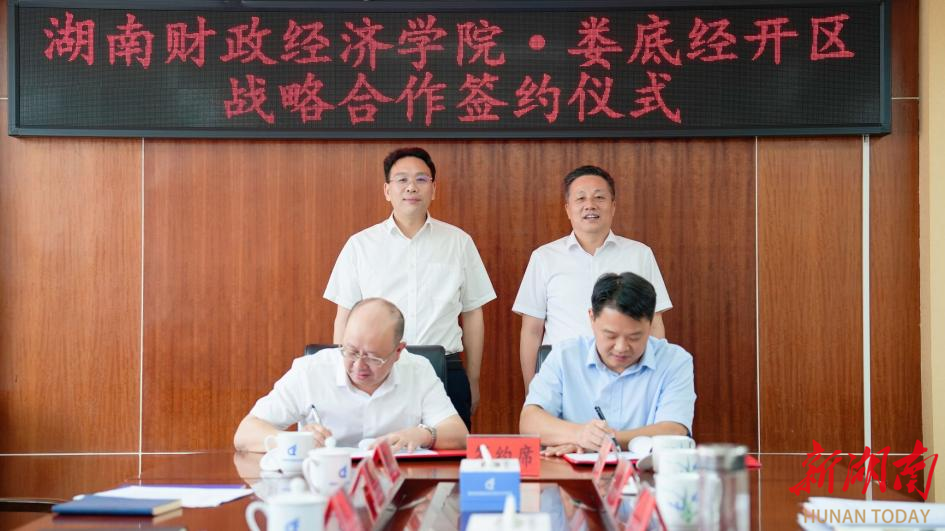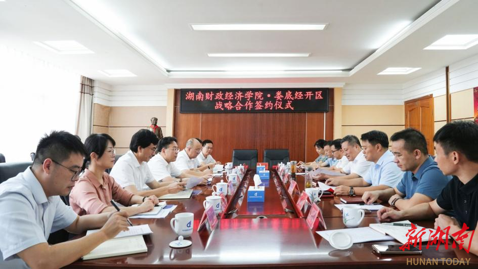 7月26日,湖南财政经济学院党委书记易棉阳、副校长赵鹤平一行赴娄底经济技术开发区洽谈推进校地合作相关事宜,并与娄底经开区签署战略合作框架协议。娄底经开区党工委书记肖雄杰,党工委副书记、管委会主任王寄忠,党工委副书记朱石牛出席活动。