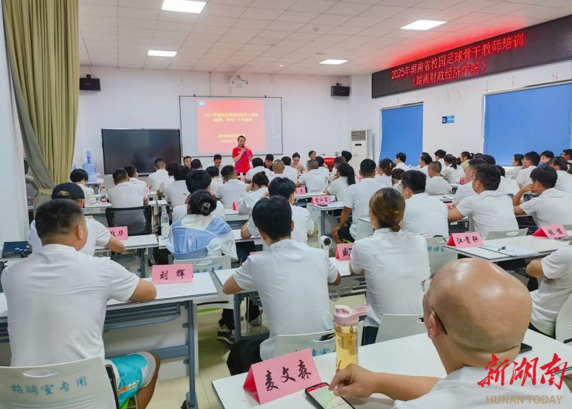 7月25日,2025年全省校园足球专项培训班开班仪式在湖南财政经济学院举行。湖南省教育厅体育卫生与艺术教育处主任张志敏、湖南省校园足球办办公室主任李泽群,湖南财政经济学院党委副书记苏玲以及体育学院、党政办相关负责人出席开班仪式。