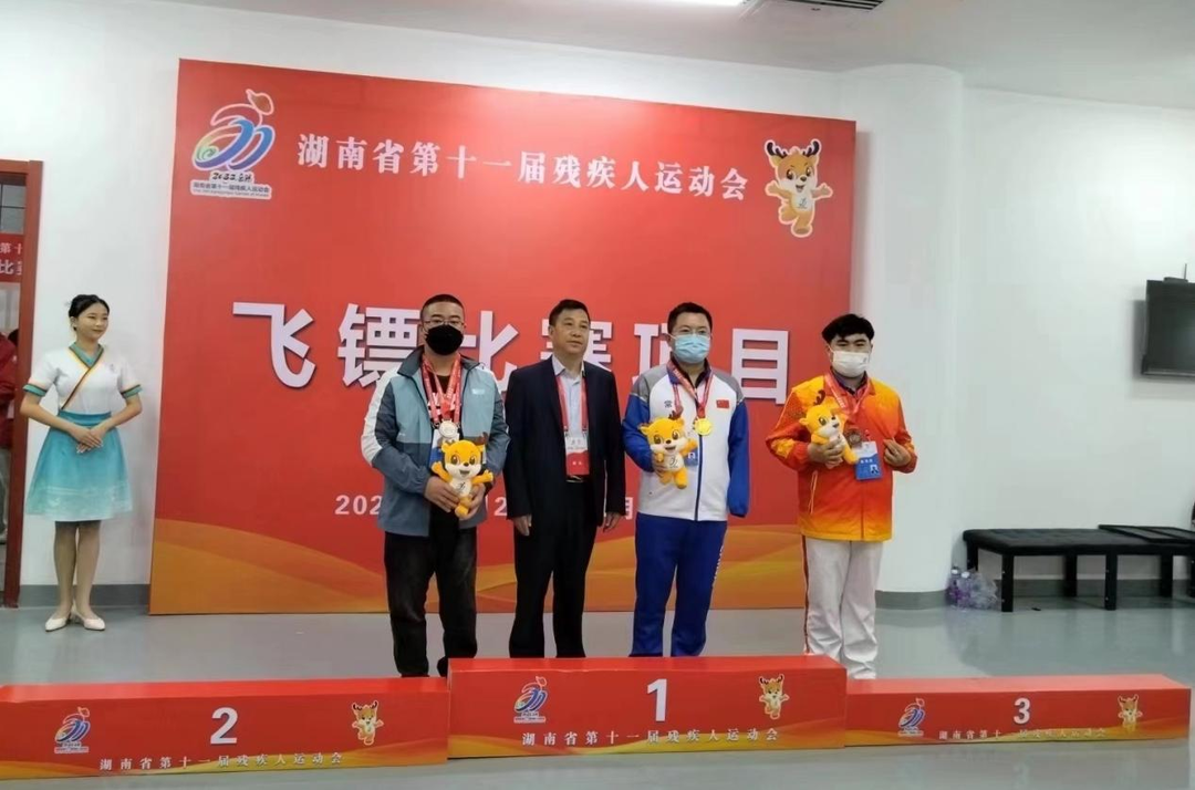 2022年11月,刘浪以运动员的身份参加了湖南省第十一届残疾人运动会,面对众多经验丰富的老手甚至是以往的全国冠军,他浑然不惧,沉着应战,最终脱颖而出夺得了飞镖男子站姿组铜牌。站上领奖台的那一刻,泪水模糊了这个少年的双眼。