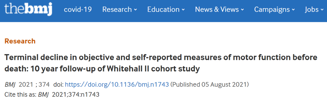 2021年,《英国医学杂志》刊登的一项研究显示,65岁后运动能力越差,死亡风险越高,并且从去世之前10年开始,就会出现运动能力衰退的迹象,例如难以从椅子上起身或更衣困难。