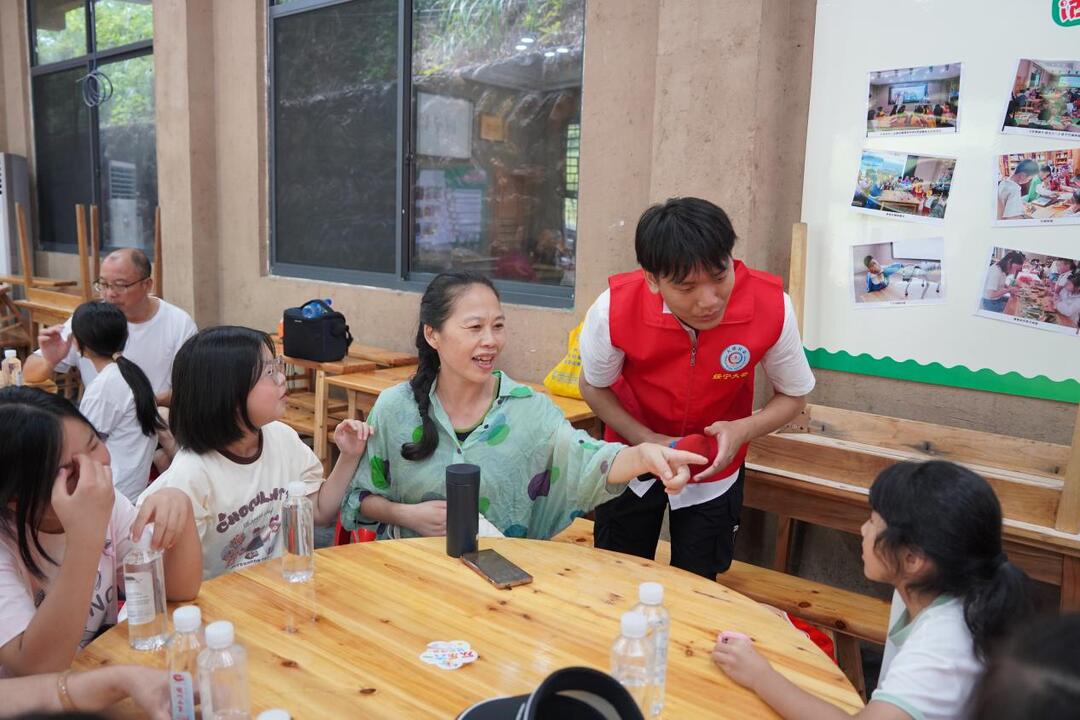 开场仪式后,破冰互动游戏迅速拉近了彼此的距离。“交换名字”“数字炸弹”等游戏让孩子们在轻松的氛围中渐渐敞开心扉,志愿者们也融入其中,与孩子们嬉笑互动。随着游戏的推进,现场的拘谨悄然消散,阵阵欢笑声,孩子们的脸上绽放出纯真烂漫的笑容。