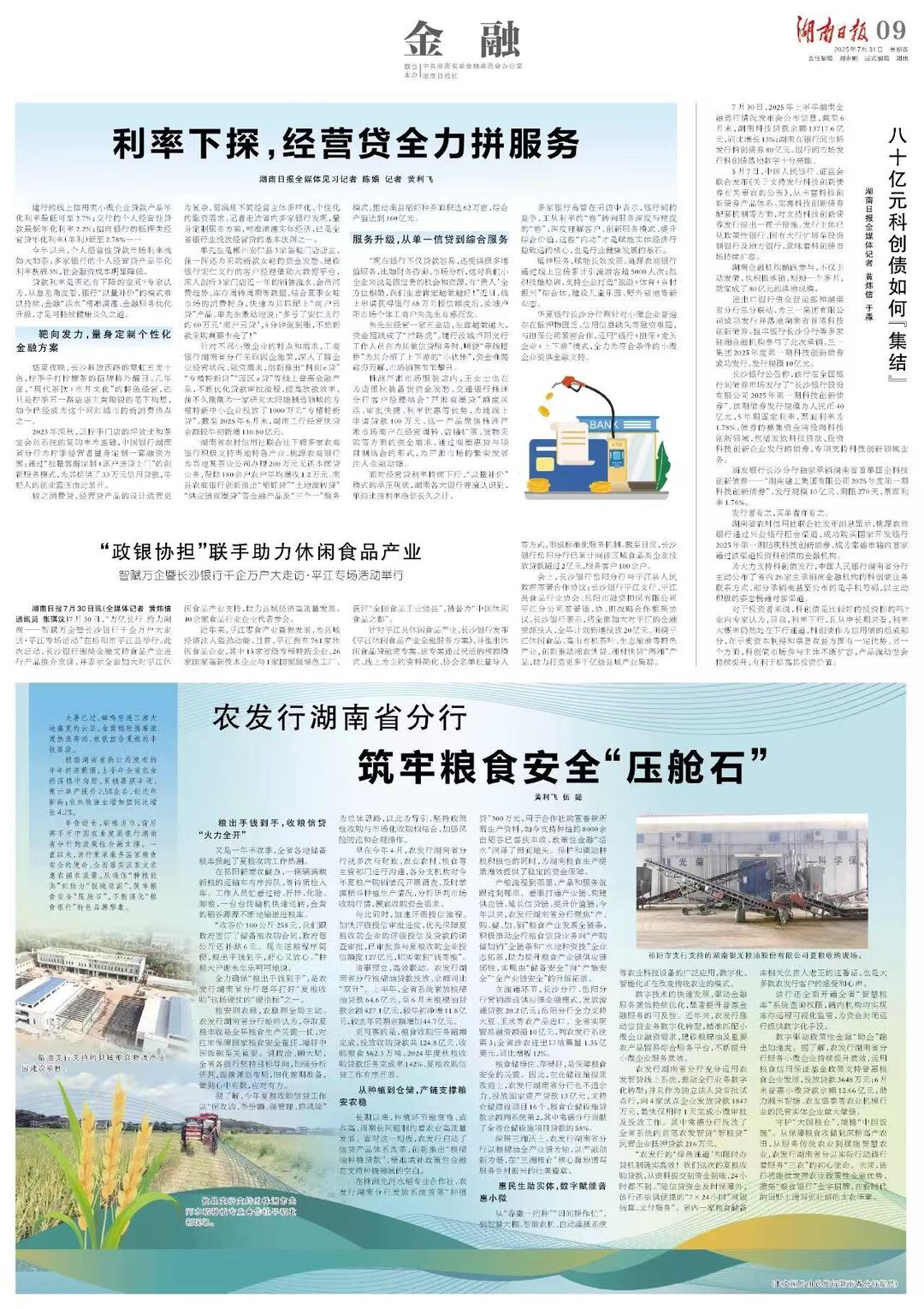 针对不同小微企业的特点和需求,工商银行湖南省分行采取因企施策,深入了解企业经营状况、融资需求,创新推出“科创e贷”“专精特新贷”“园区e贷”等线上普惠金融产品,不断优化贷款审批流程,提高放款效率。前不久刚刚为一家研究太阳能制造领域的专精特新中小企业投放了1000万元“专精特新贷”。截至2025年6月末,湖南工行经营快贷余额较年初新增110.80亿元。