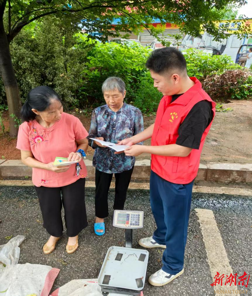 湖南法治报·新湖南客户端讯(通讯员 陈奕)为进一步发挥高校大学生普法生力军作用,近日,衡阳市石鼓区司法局金源司法所携手大学生普法志愿者在金源安置小区集市开展“送法下乡”专题普法宣传活动。尽管天空飘着小雨,但这丝毫没有影响司法所工作人员和大学生普法志愿者的热情。