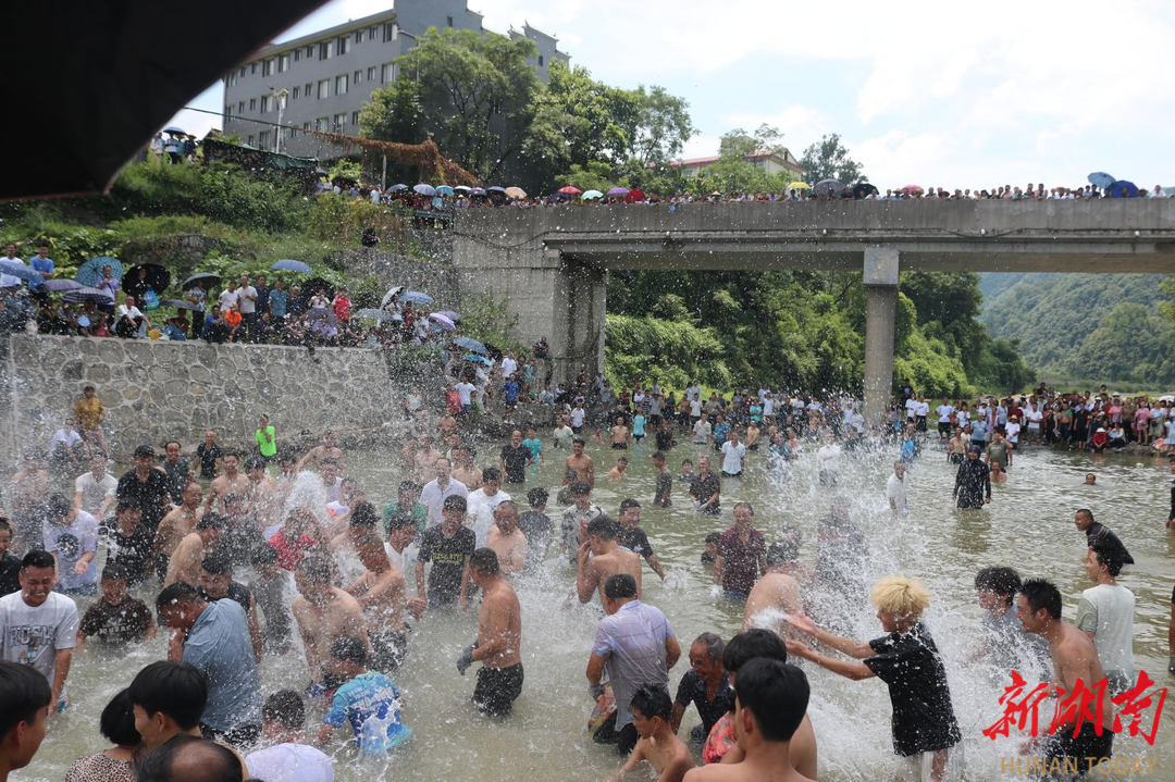 与此同时,大桥摸鱼区更是欢腾一片,群众赤足蹚水、俯身追逐,水花中翻腾的不仅是鲜鱼,更是湘黔群众泼洒的团结欢愉,活动被推向了全民共乐的高潮。