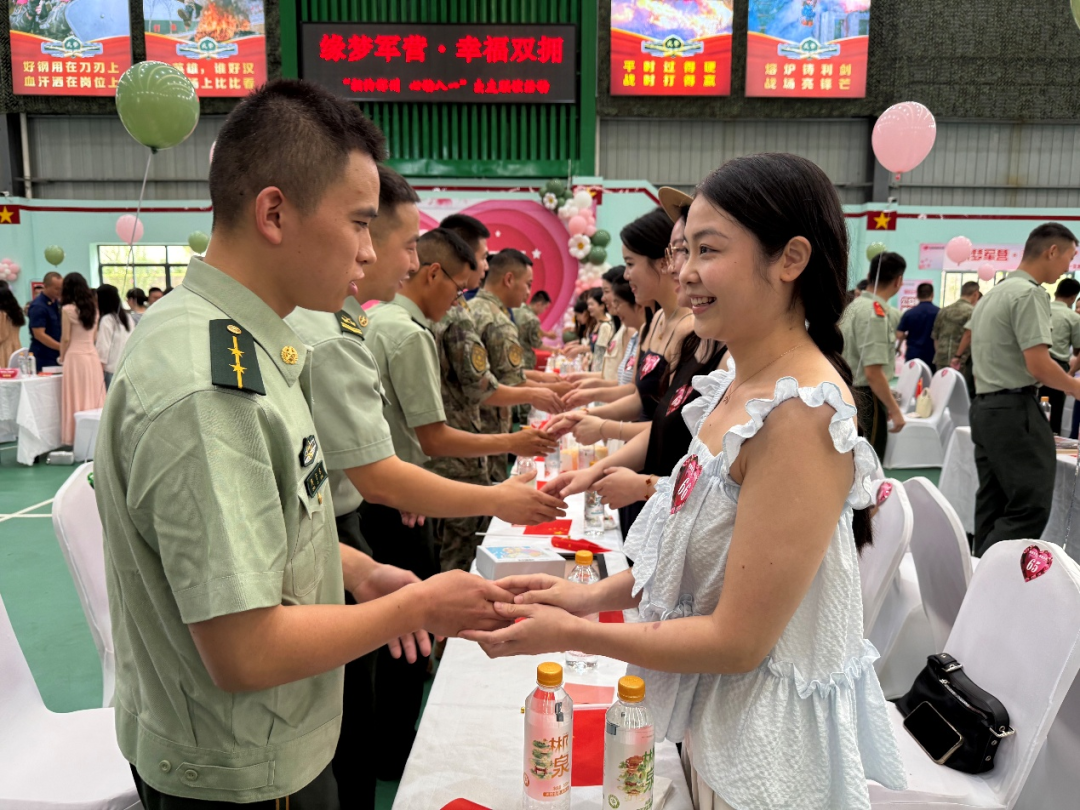 军地同心架鹊桥,军民鱼水情更浓。8月1日上午,郴州市“缘梦军营·幸福双拥”八一主题军地青年联谊活动在驻郴某部队营区温馨举行。来自驻郴部队及郴州市消防救援支队的84名单身官兵、消防救援人员与郴州市84名优秀女青年欢聚一堂,共同庆祝中国人民解放军建军98周年。