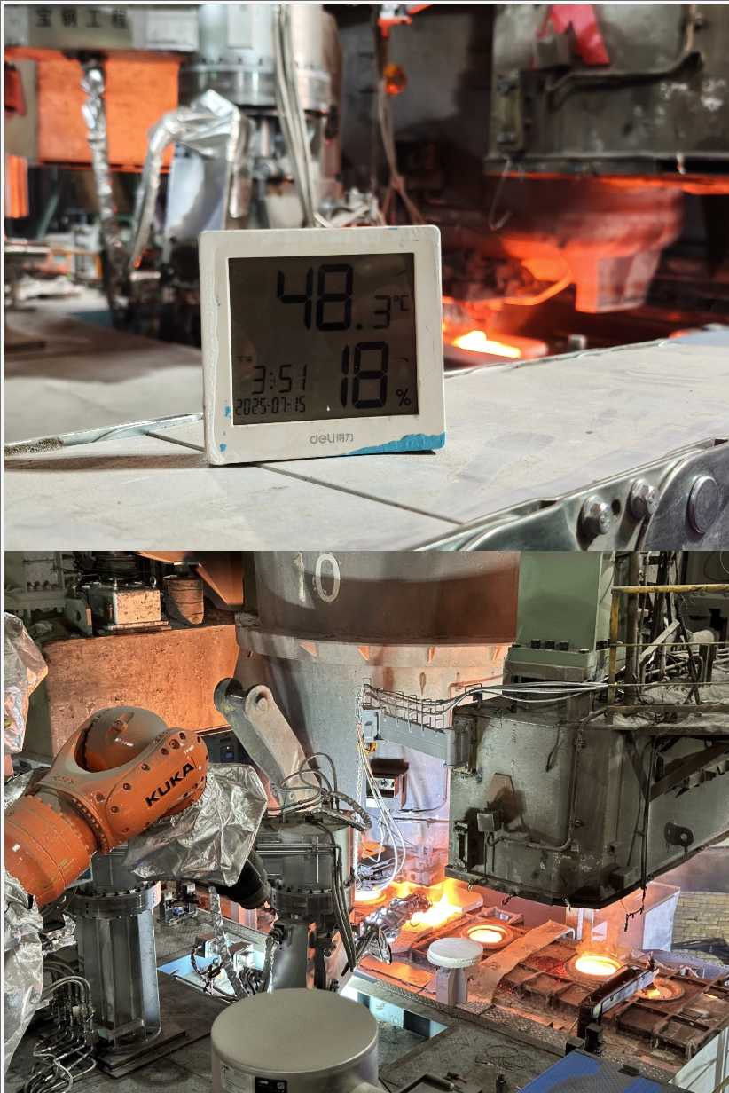 宝钢股份炼钢厂一炼钢工场连铸作业区实时温度48.3℃,日班作业长李鹏说,曾经工人要穿着高温防护服现场作业,如今可以远程操控工业机器人等设备完成多种工作。