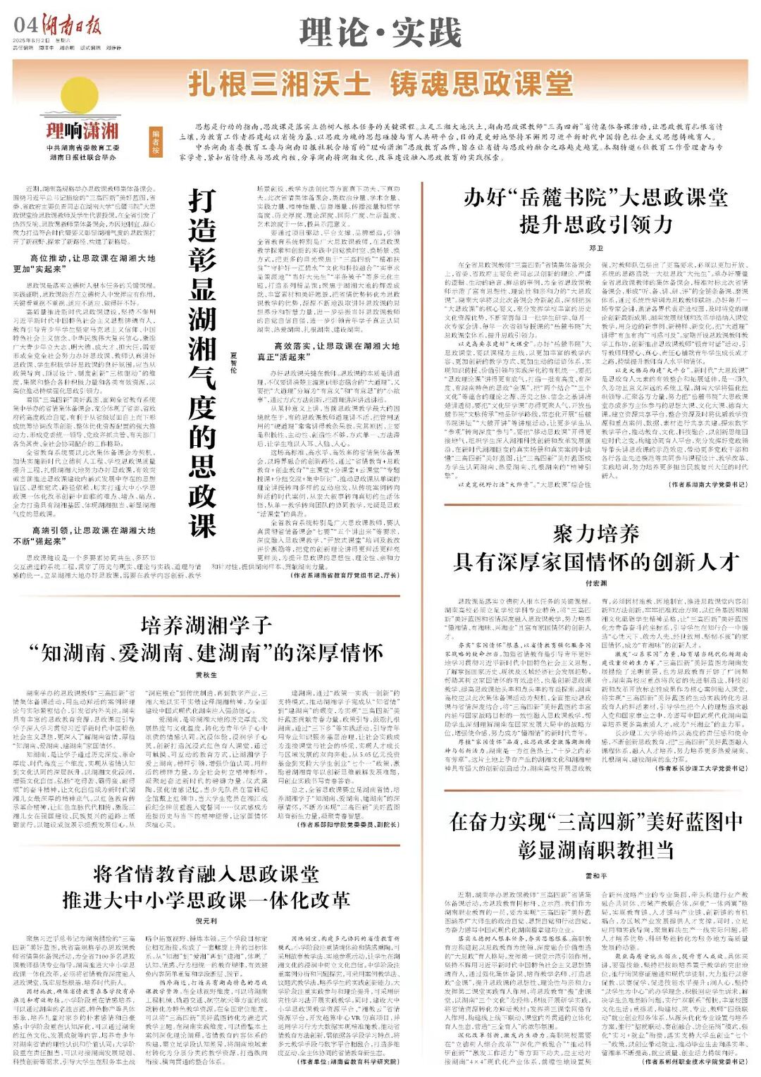 高端引领,让思政课在湖湘大地不断“强起来”