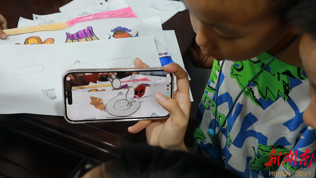 在数字化浪潮下,感光支教团运用AR技术为孩子们带来了一场别开生面的科技探索课。课程打破了传统学科的边界,将艺术与科学融合。画中的火柴人挥舞木剑,小兔子蹦蹦跳跳寻找胡萝卜,香蕉像毛毛虫一样扭动……这些生动的画面让孩子们惊叹不已,科学的种子在他们心中悄然播下。
