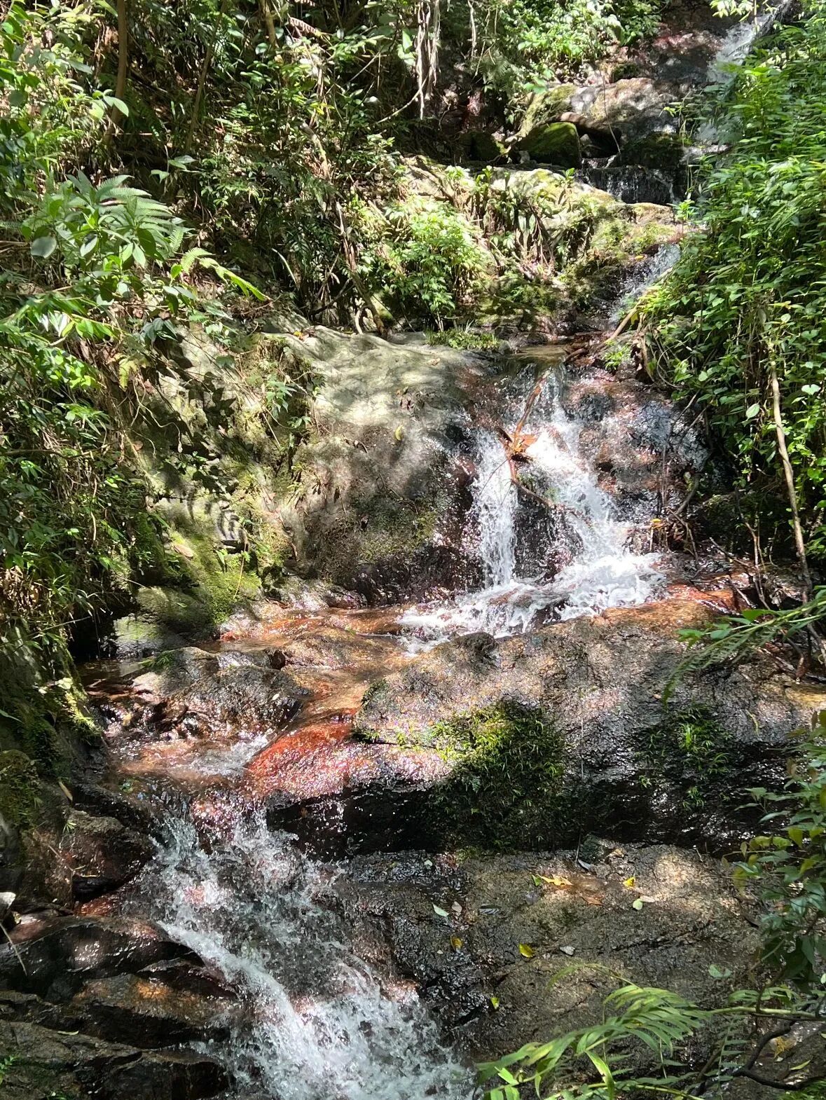 沿着溪流前行,峡谷逐渐收窄,两岸峭壁如刀削斧劈,藤蔓缠绕,古木参天。