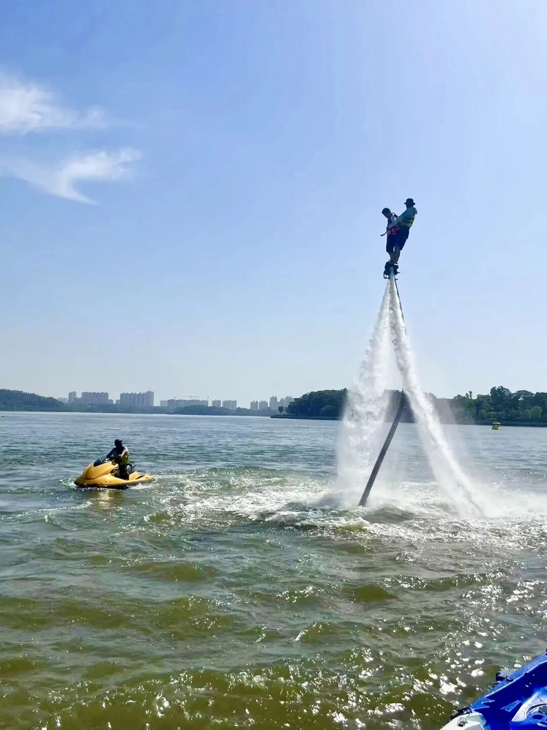 在后浪公园欢乐水岸,安排一场夏日亲水之旅,在南湖水上运动中心体验无人驾驶智慧游船、游艇、帆船、快艇、摩托艇、水上飞龙等多类型水上运动。