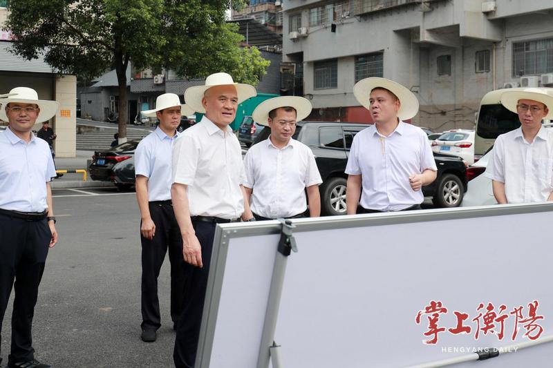 7月31日上午,刘越高在张家山片区调研老旧小区改造情况。