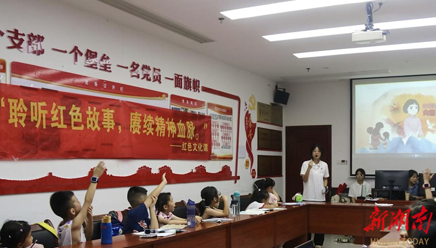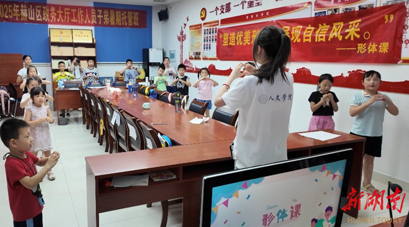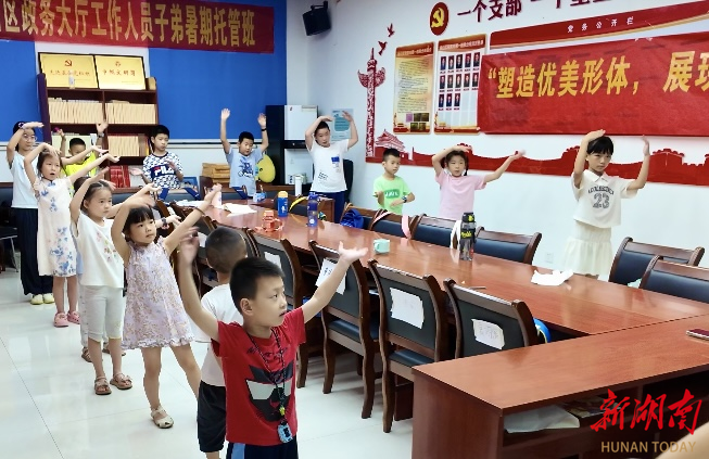 随着节奏明快的旋律在教室里响起,赫山区政务服务中心的孩子们整齐地跳起 “童心向党” 手势舞。一双双小手或并拢上举,似飘扬的红旗,这欢快的旋律和寓意深远的手势舞,深深吸引着每一个孩子。