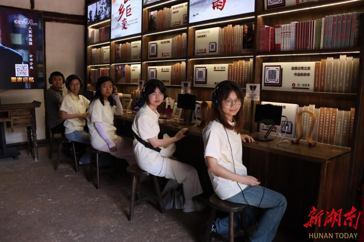周立波故居旁的主题书屋,是村里文化传播的重要窗口。这间保留着当年陈设风格的书屋,书桌、煤油灯、藤椅等装饰都带着年代感,不同的是多了几台银灰色的有声阅读设备。竹影透过木窗洒在设备上,午后三点,设备会准时播放《山乡巨变》的方言广播剧,电流声混着蝉鸣,成了村里独特的背景音。团队体验了有声阅读设备,通过互动体验,探索乡村文化传播新路径,让经典文学在传统与科技融合中焕发活力。