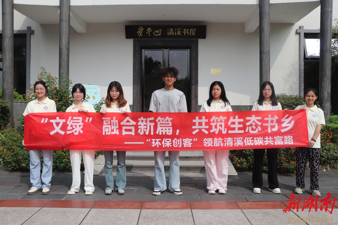 这一座座承载着文学脉络的文化地标,以墨香为底、乡韵为骨。这21座书屋是政府与旅游集团合作,由精心挑选的居民楼改造而来,不仅打造了特色文化景点,还为当地居民提供了稳定的就业,提高了清溪村常住人口数,实现了“文旅+就业”的创新推进。“环保创客”队员们在书屋前擎起横幅,锚定“文学赋能生态”路径——借书屋的文化引力,解码了“书香+低碳”的共富密码,让文学滋养与绿色行动在乡土土壤里交织生长。