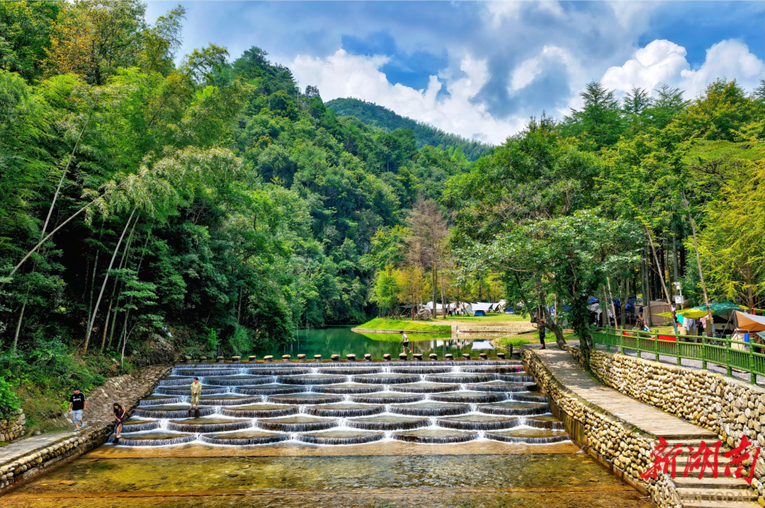 八月流火暑热难耐,人们三五成群结伴来双牌阳明山避暑,我们夫妇也是这避暑大军的一员。上山半个月了,因山上气候几乎每天一场大雨,而且总是乌云飘忽,时不时来一场意想不到的阵雨,斯文尔雅的八方游客难免遭遇落汤鸡的尴尬。有鉴于此,我那念念不忘全程游览小黄江源的夙愿一直无法实现。今天瞅准天公美意,沿着小黄江源溯流而上。