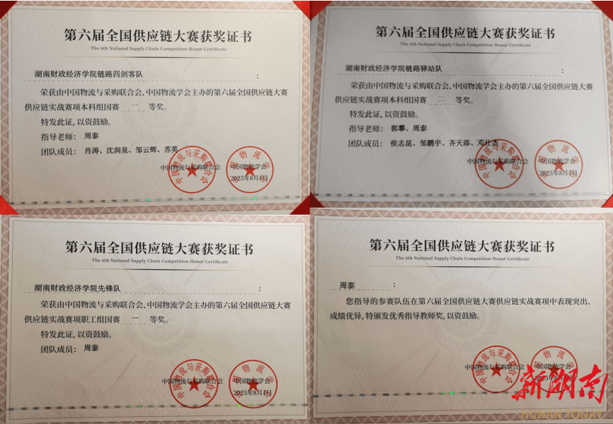 8月1日,第六届全国供应链大赛供应链实战赛项决赛落下帷幕,湖南财政经济学院师生凭借扎实的专业功底与出色的实战能力,斩获本科组一等奖1项、职工组一等奖1项、本科组二等奖1项,周泰老师获评“优秀指导教师奖”。