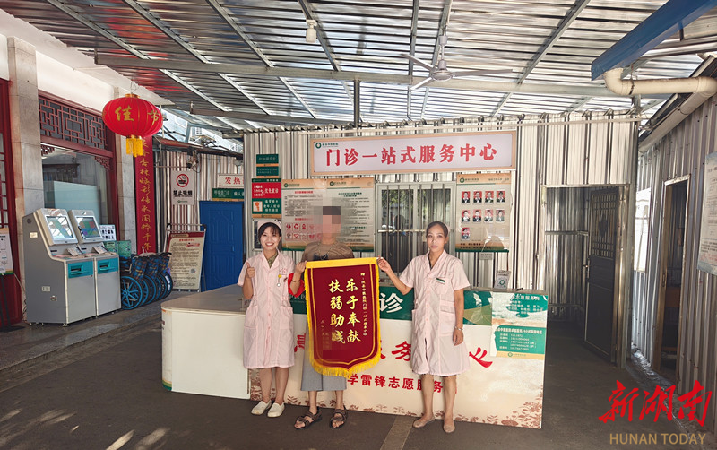 大众卫生报·新湖南客户端8月7日讯(通讯员 陈湾)8月4日下午,道县中医医院门诊一站式服务中心来了一位小男孩,他手里举着一面锦旗递给导诊台,导诊护士唐小婉赶紧上前询问:“你好,小朋友!你的锦旗是想送给哪位医生或者护士啊?”小孩没说话,把锦旗交到护士手里转身就往回跑。