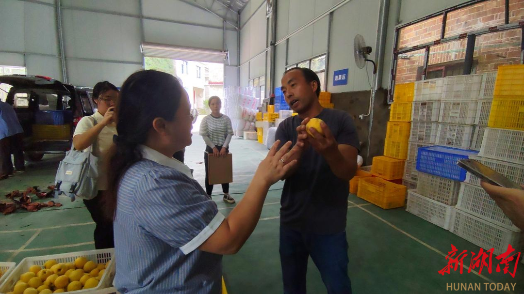 随后,团队调研了水口电商分拣中心。作为连接当地农户与广大消费者的关键枢纽,该中心有效扮演着“中间商”角色:通过订单农业模式与农户签约合作,为分散的果农提供了稳定的电商销售渠道,切实解决了农产品“卖难”的核心问题。在分拣环节,中心依据黄桃的大小、糖度、外观等关键指标进行严格精细的分级,确保产品的标准化,从而满足不同消费者的多样化需求(包括一级果、精品果、至尊装等不同等级)。同时,中心高度重视质量安全,配备了专业的农药残留检测设备,对收购的每一批黄桃进行严格的安全检测,筑牢了从田间到餐桌的食品安全防线,让消费者买得放心。此外,中心提供的涵盖不同规格黄桃及不同区域快递费用的清晰报价体系,也充分体现了其运营的规范化和透明化。