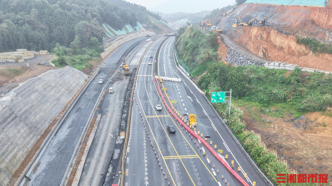 当前,耒宜改扩建项目正处于右幅封闭施工,本次“先行段”改道之后,项目左幅水龙互通拼接旧路面处的桥梁桩基施工、涵洞拆除重建、七级边坡爆破等工程得以实现完全占道作业。