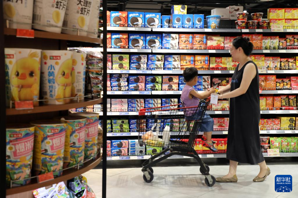 8月9日,在山东省滨州市博兴县一家超市,消费者选购食品。新华社发(陈彬摄)
