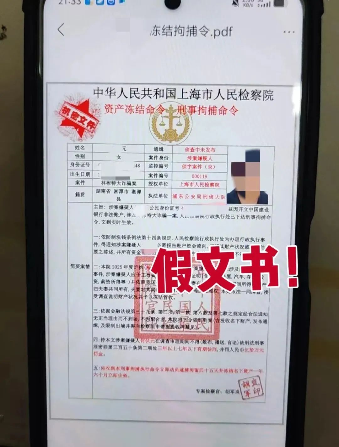 一张冰冷的“拘捕令”