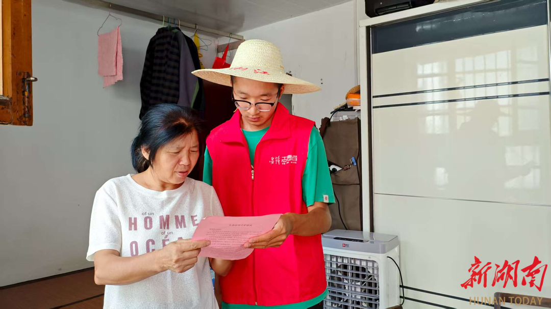 新湖南客户端8月15日讯 (通讯员 颜江 图片 刘俊杰 孙艺凌)8月15日全国生态日当天,一场贴近群众的生态环保普法宣传活动在湖南湘江新区望岳街道谷峰村开展。此次活动在湖南湘江新区政法工作部、湖南湘江新区(长沙市岳麓区)河长制工作组办公室、岳麓区人民检察院指导下,由湖南湘江新区望岳街道司法所、长沙市岳麓区青年志愿者联合会承办,湖南湘法律师事务所协办,以返乡大学生“送法下乡”活动为契机,让生态保护理念与法律知识走进寻常百姓家。
