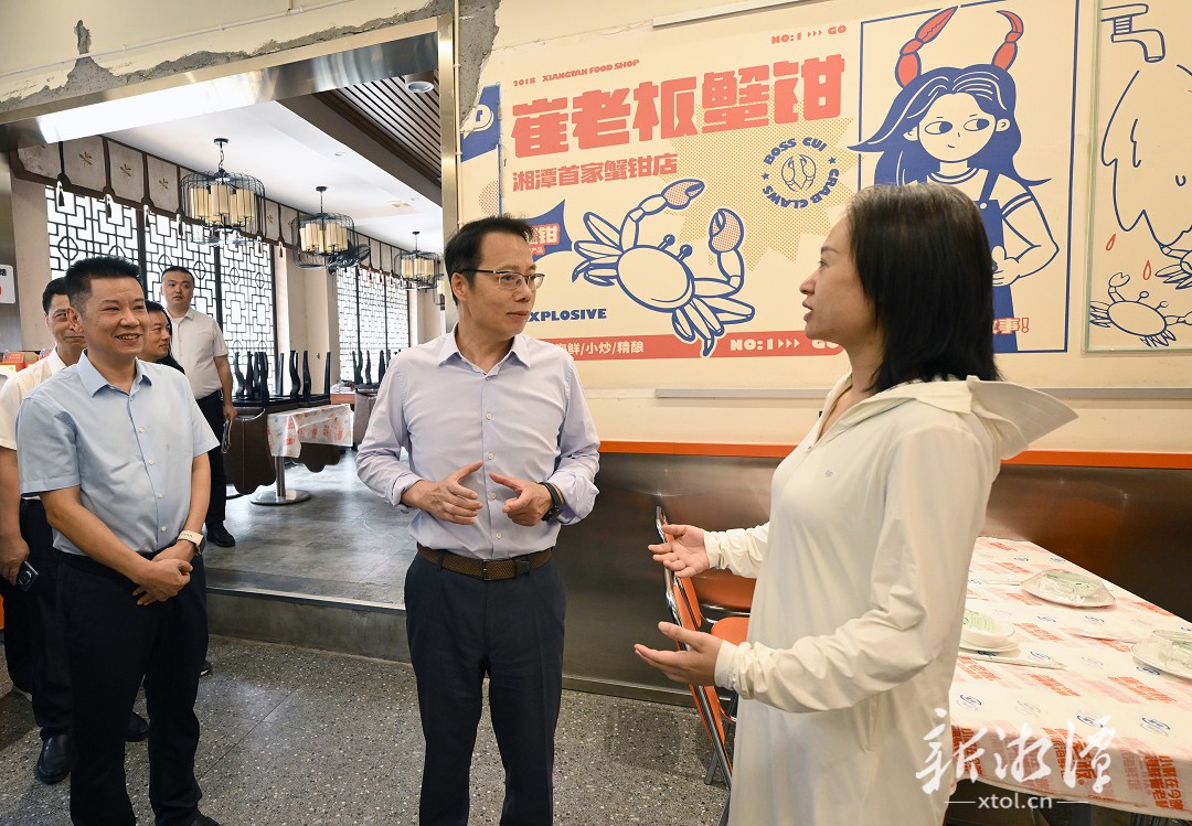 位于岳塘区的申塘路特色烟火餐饮街巷目前已入驻多家网红餐馆,吸引了大量市民和周边游客前来打卡品尝美食。“爆款菜品有哪些?”“平均每日营收额多少?”走进崔老板蟹钳餐馆,胡贺波与负责人深入交流,详细询问日常经营状况。他强调,要树牢市场化思维,突出特色为王、服务至上,充分发挥“网红餐馆”“宝藏小店”的示范标杆作用,因地制宜打造一批特色餐饮名店名街,让街头巷尾的烟火气更加浓郁,以“味蕾游”推动人流变客流。