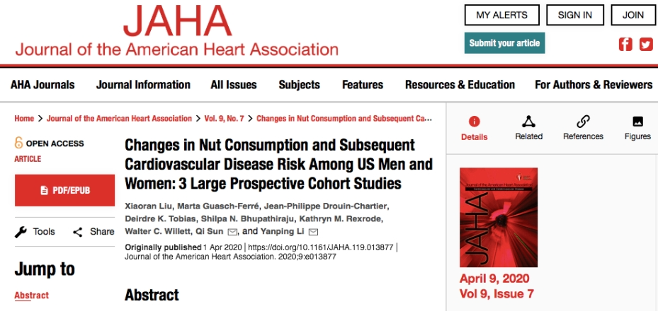 ⑤Liu, Xiaoran. , et al. Changes in Nut Consumption and Subsequent Cardiovascular Disease Risk Among US Men and Women: 3 Large Prospective Cohort Studies. Journal of the American Heart Association 9.7(2020):e013877.