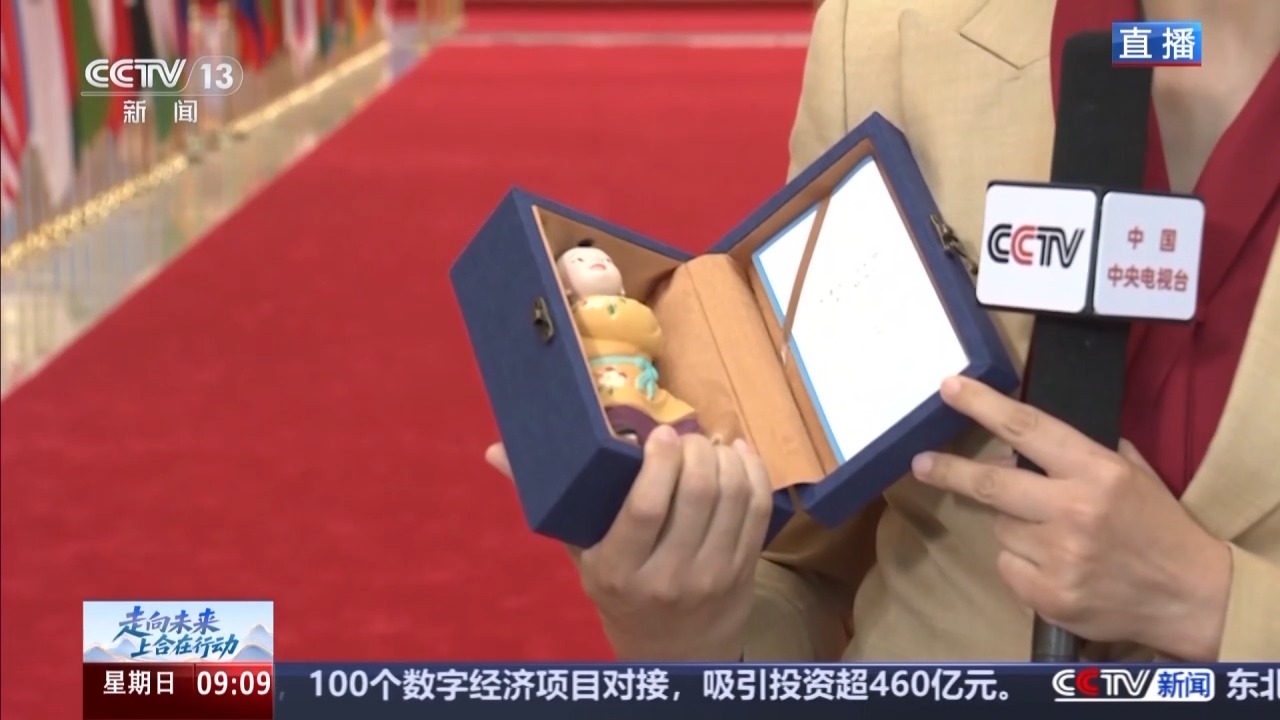 总台央视记者 王春潇:会场内还准备了一个中国非物质文化遗产展示体验区,各国来宾不仅可以参观互动,还会收到“伴手礼”,小小心意也藏着特别的惊喜,我借来了一个国家级非物质文化遗产天津的“泥人张”,惊喜就在这个小盒子里面。专门为此次峰会准备的《和合献瑞》,一共有12个充满吉祥寓意的泥人娃娃,款式不同,祝福相似。看看我借来的是哪一款?是手捧石榴的这一款。团结和谐、和合之美,我们也借着这份匠心传递来自天津峰会的美好祝福。
